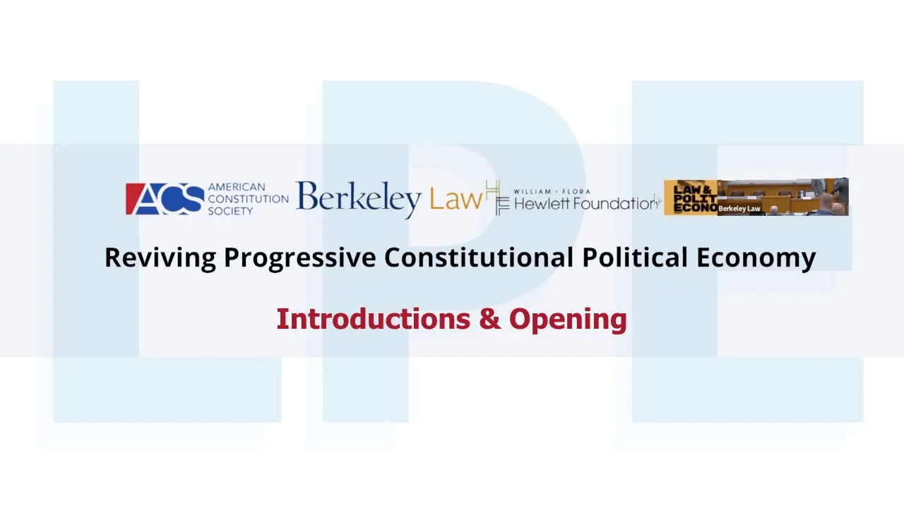 Reviving Progressive Constitutional Political Economy Conference at Berkeley Law